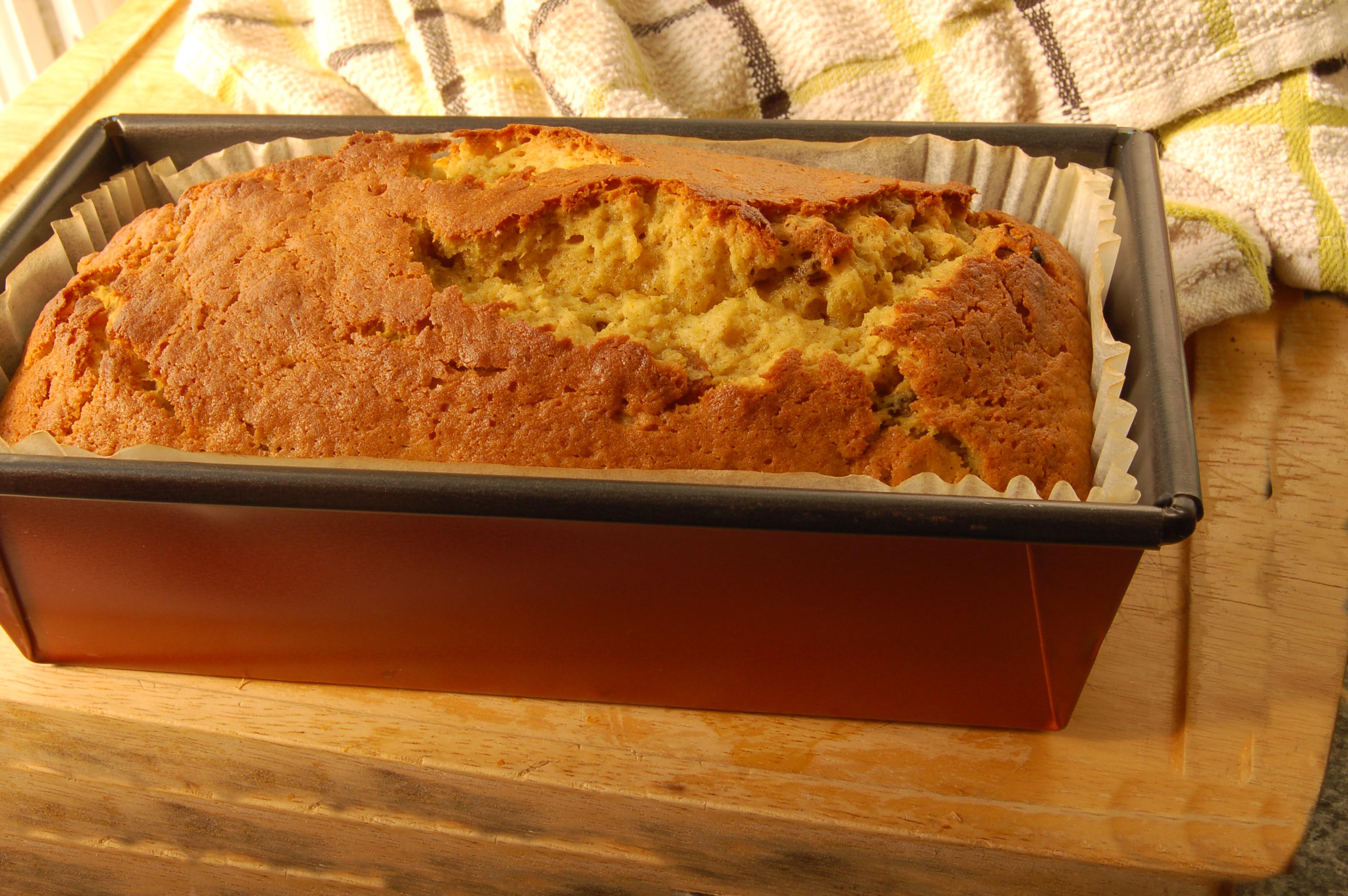As you know I hate waste and we recycle our kitchen waste; egg shells, tes bags and peelings, at our local community garden. About once a month we make a cake or cakes and share with the garden’s volunteers. This months is my easy but spicey banana and raisin cake.