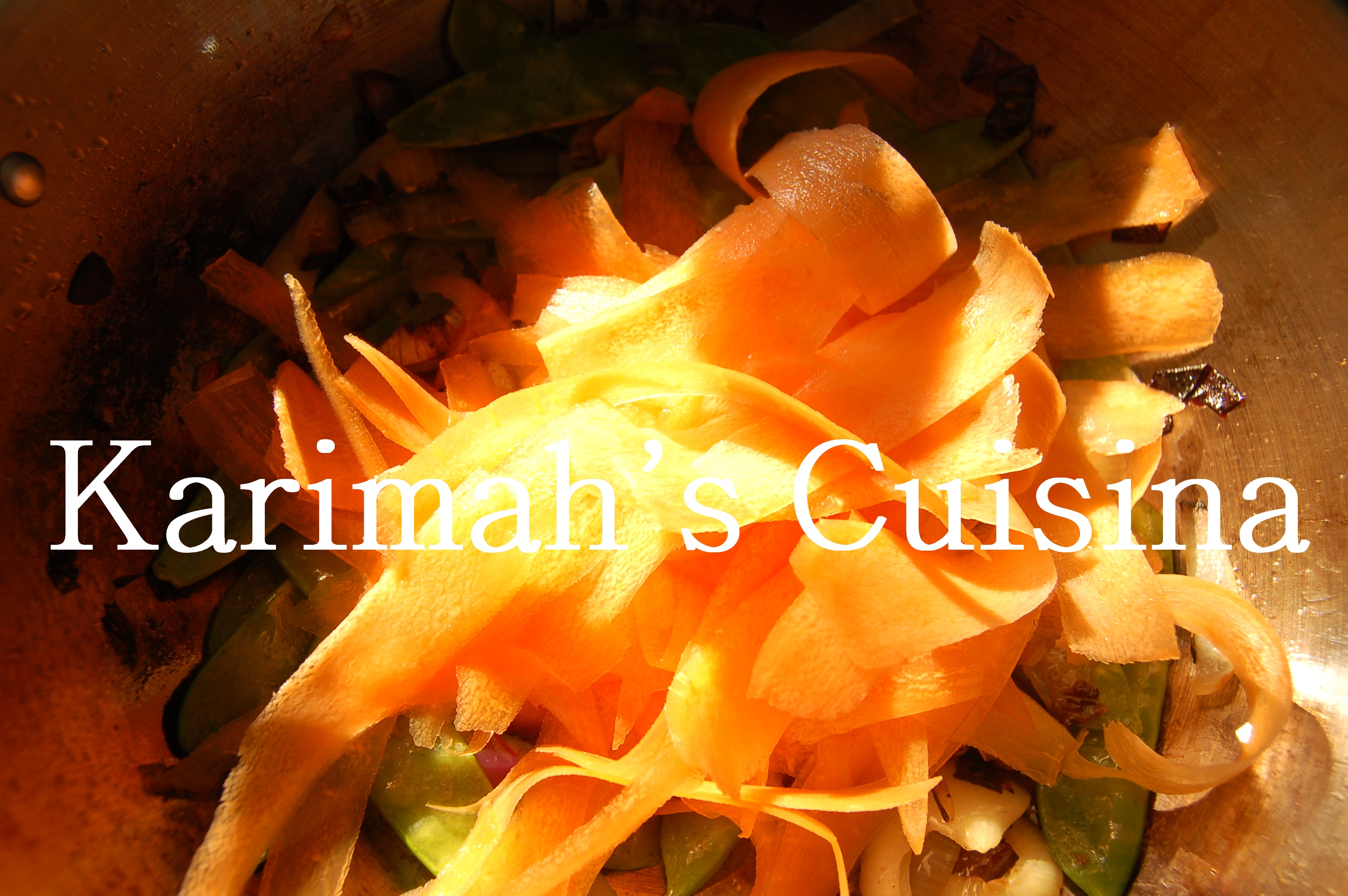 • Add carrot ribbons or slices, cook a few minutes stirring