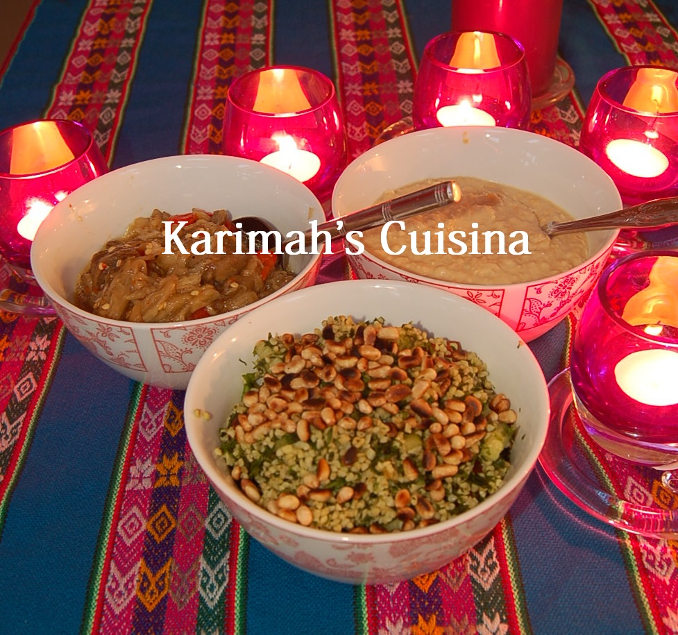 Tabouleh is a green salad that is quick and easy to make especially of you a have food processor or mini chopper. Many years prior to Islam I always seem to have Muslim friends, with their generous hearts they used to invite me and my friend to eat with them. I remember once going to an expensive Lebanese restaurant overlooking Green Park,Picadilly, this was the first time I experience the mezze of Lebanese food. Within the mezze is the tabouleh salad that adds a fresh citric refresher across the palate in contrast with the nutty meaty flavours of the other succulents. It is traditionally made with just parsley but I make it half and half, parsley and coriander, both herbs are high in nutritional properties and good for the mind and body. Of course there has to be fresh mint. Back to the soul, it was the respect and generosity of these people that attracted me to Islam and as I learnt more about the character of the prophet Muhammad (pbuh) and I realized that generosity is a big part of the Islamic heart